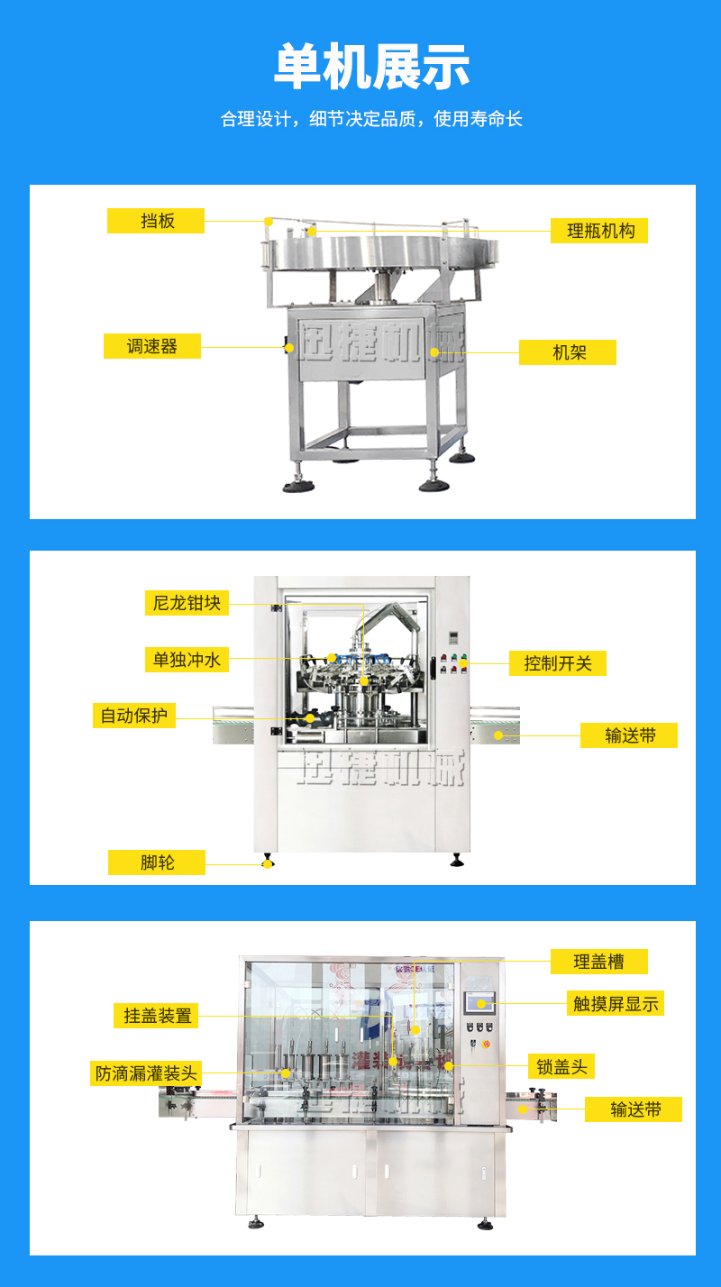 公司主要經(jīng)營兩大類產(chǎn)品:灌裝機(jī)和包裝機(jī)。其中灌裝機(jī)主要產(chǎn)品有:食用油灌裝機(jī)、液體灌裝機(jī)、膏體灌裝機(jī)、自動灌裝機(jī)、全自動灌裝機(jī)、辣椒醬灌裝機(jī)等;包裝機(jī)產(chǎn)品有:粉劑包裝機(jī)、顆粒包裝機(jī)、液體包裝機(jī)、自動包裝機(jī)、真空包裝機(jī)等。